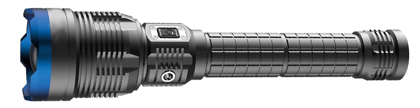 LED lykt med 4000 mAh oppladbart batteri. 1000 lumen. Lyslengde hele 900 meter på maks. Powerbank-funksjon med USB utgang. Laget i aluminium. Vanntett og støvtett ihht: IPX7.
