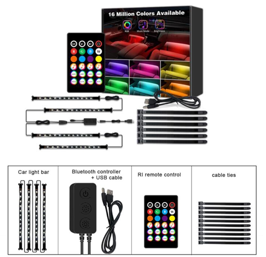 Pynt kjøretøyet ditt opp innvendig med LED belysning. Monteres enkelt under setet eller andre steder du ønsker ekstra god belysning. Det medfølger også fjernkontroll til å styre lysene og ta på den fargen man ønsker.