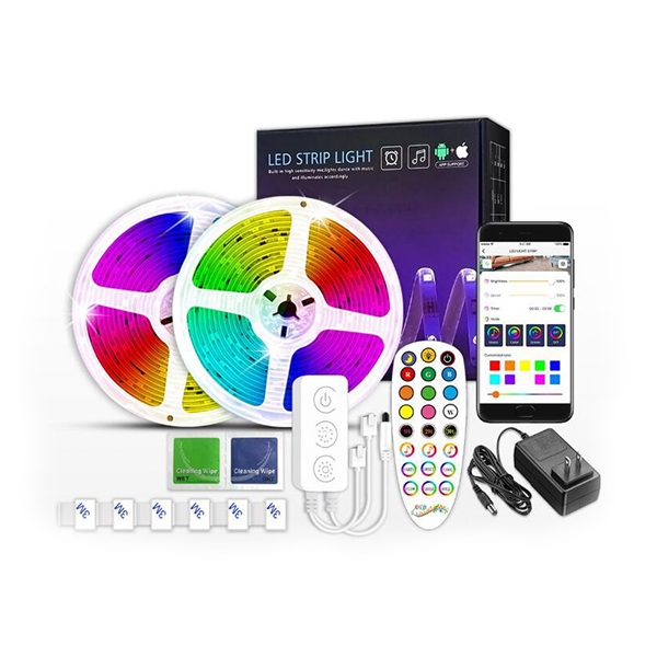 - Kontroller på selve RGB LED stripen og fjernkontroll med batteri.